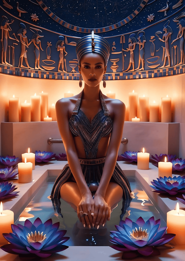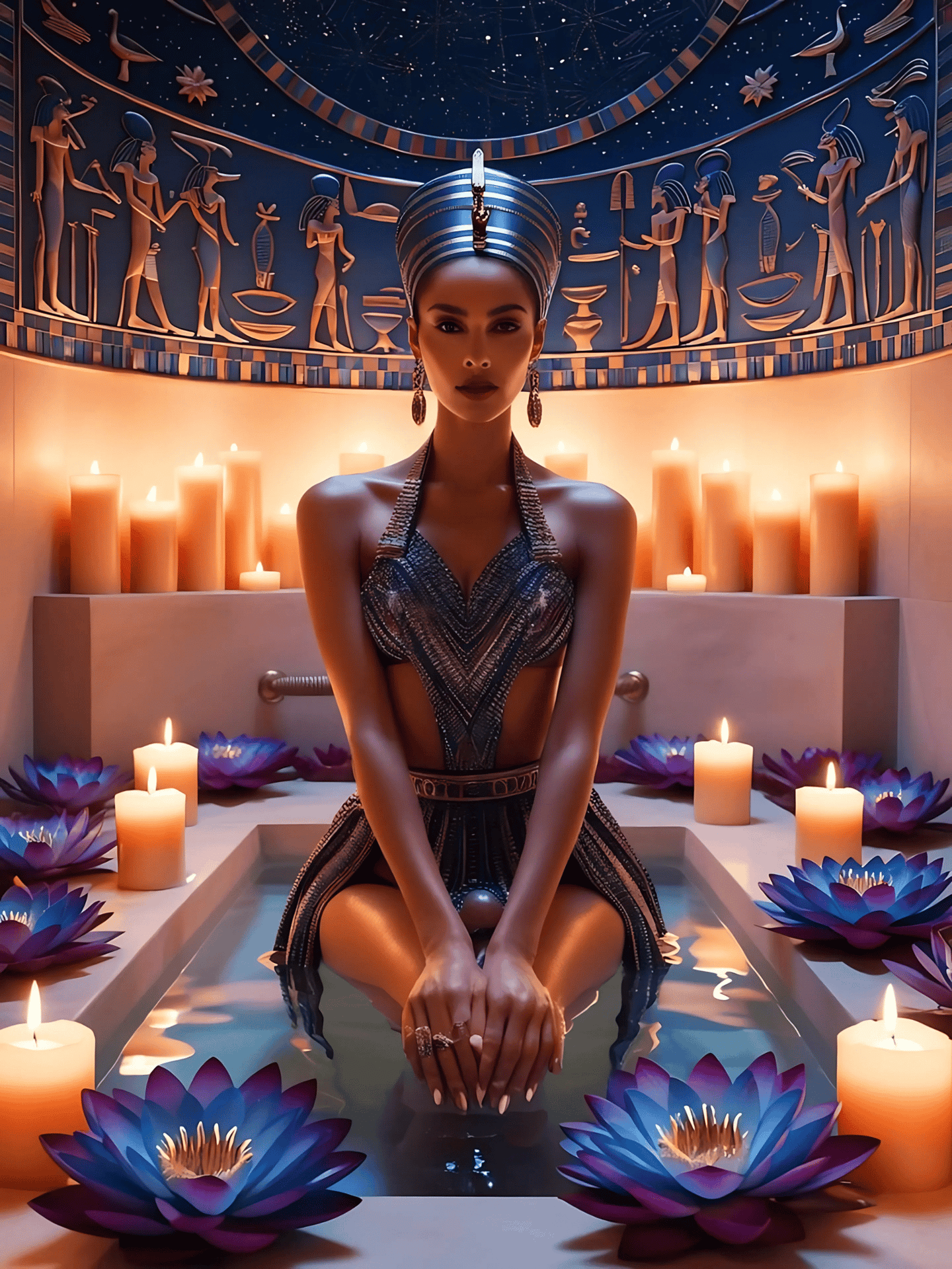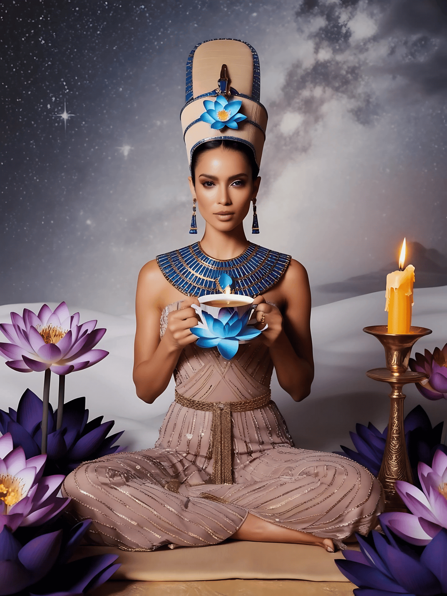 In the sacred silence of Egyptian temples, by the tranquil waters of the Nile, a flower of mesmerizing beauty rises from the depths.